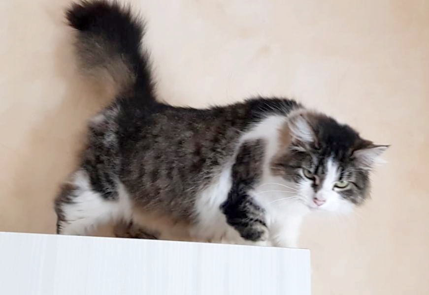 Mounette est une splendide chatte aux poils mi-longs très doux. C’est une gentille minette qui adore les caresses, aime se faire brosser. Elle adore se percher en hauteur pour observer son petit monde.
