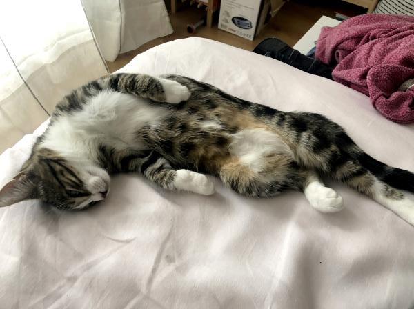 Elle adore jouer avec des peluches, se prélasser sur les oreillers. Son endroit favori pour faire la sieste ? Dans le cou. Elle est ok chats et ne connait pas les chiens. Elle vit actuellement avec un chat adulte et la cohabitation se passe bien. Elle est propre.