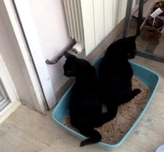 Moi c’est Spy, je suis l’élégant et longiligne chat noir et blanc sur les photos. Je suis un chaton dynamique plein de peps. Le petit costaud tout noir sur les photos avec moi c’est mon frère Sashimi. Il est super gourmand et n’hésite pas à aller piquer dans ma gamelle ce qui explique ses rondeurs. Il est de nature, plus posé. Nous sommes un peu comme le yin et le yang.