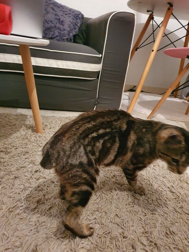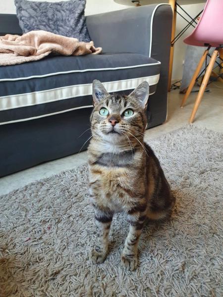 Son histoire: Souris est arrivée dans le jardin d’une dame qui l’a nourrie jusqu’à ce qu’un jour elle arrive sérieusement blessée à la queue. La dame nous a alors contactés pour que nous soignons Souris et lui trouvions une gentille famille.