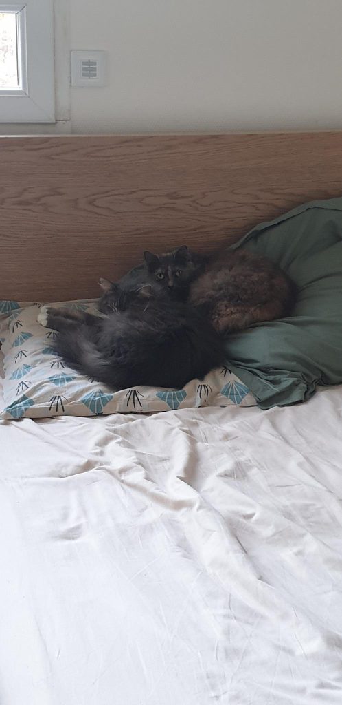 Nous pensons qu’elles seraient mieux en chattes libres avec un abri pour dormir (abri de jardin, dépendance, garage avec chattière) un point de nourrissage quotidien. Elles pourraient ainsi retrouver leur liberté et faire leur vie à proximité des humains et décider d’elles-mêmes de s’en rapprocher ou non. Elles sont ok chats.
