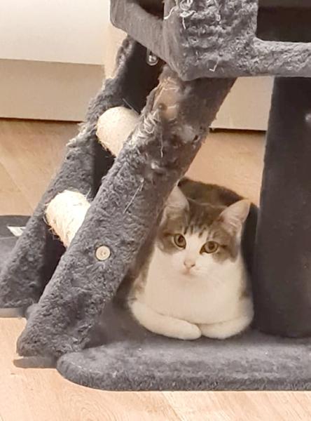 Son histoire: Souana et son frère Soho (adopté) sont nés d’une chatte errante dans le jardin d’une de nos adoptantes qui les a nourris le temps que nous puissions les prendre en famille d’accueil.