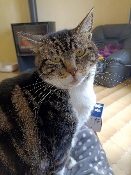 Son histoire: Tigrou a été adopté chaton et bien dans ses pattounes par une famille qui n’a plus voulu de lui au bout de huit mois car il était devenu encombrant, remplacé par un nouveau chaton. Il a été largué sans même un mot ou un regard pour lui. Nous ne savons pas ce que cette famille lui a fait subir mais il en est revenu traumatisé et a eu besoin de temps pour reprendre confiance.
