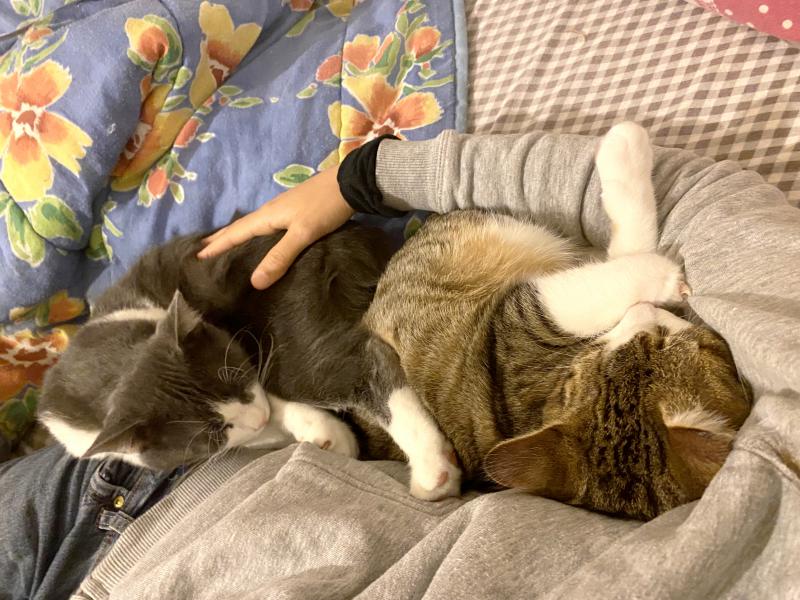 Leur histoire: Sarujan et Sayuki sont nés d’une maman errante qui a disparu. Ils ont été nourris pas l’adoptante de l’un de nos protégés qui nous a demandé de les prendre en charge.