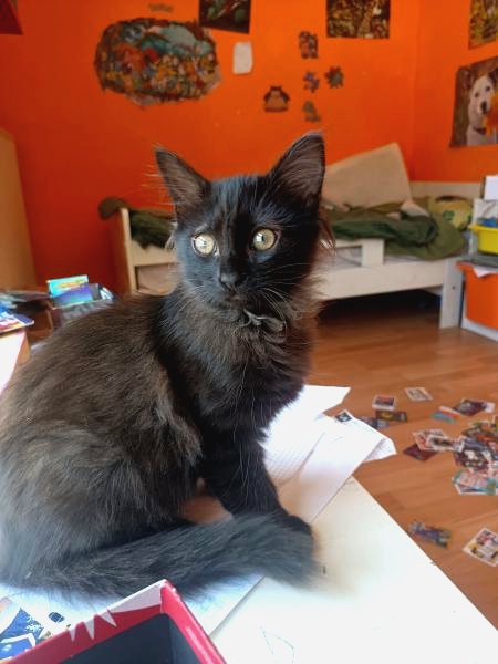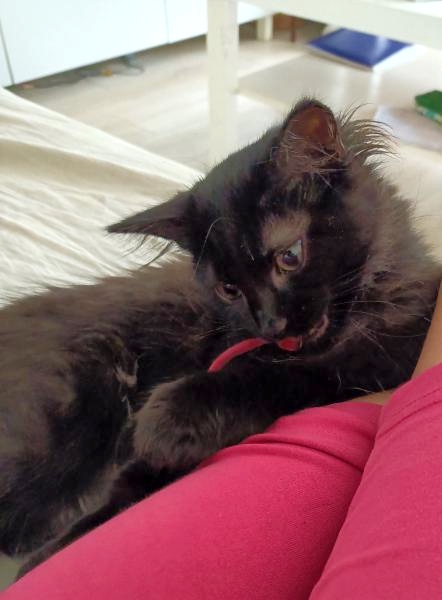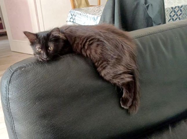 J’ai 4 mois et je suis une femelle au pelage noir et à la crinière imposante. Discrète et mignonne, je ne suis pourtant pas la dernière à réclamer caresses et câlins. Je ronronne de la première à la dernière petite attention. J’adore les endroits douillets et me prélasse souvent dans des endroits au frais, au calme et loin de l’agitation.