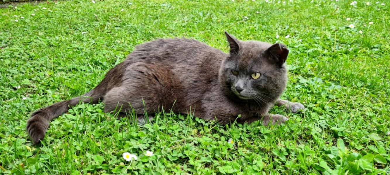 En extérieur, il ne s’éloigne jamais très loin et préfère rester dans le jardin. Il arrive dès qu’on l’appelle sauf s’il sieste sur le toit de la remise. Il faut alors lui lui montrer une boite de pâté pour le décider à rentrer.