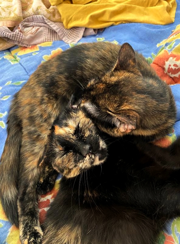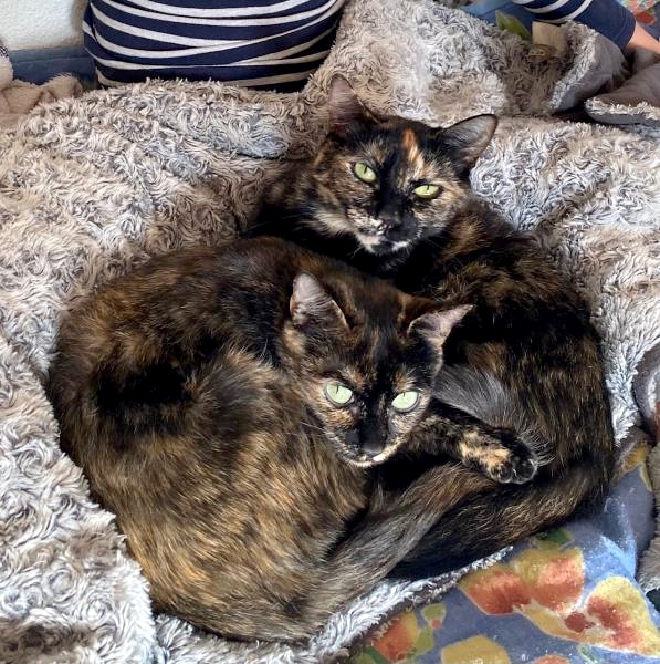 Leur histoire: Raïna et Raeva, sont nées d’une chatte errante et ont été récupérées bébés par une dame qui n’avait plus les moyens de s’en occuper correctement.