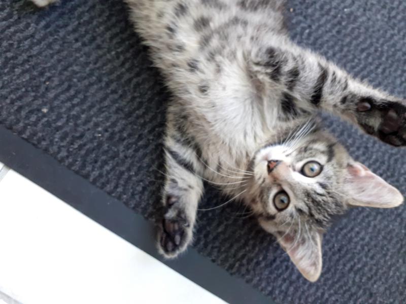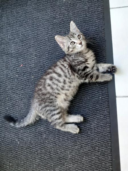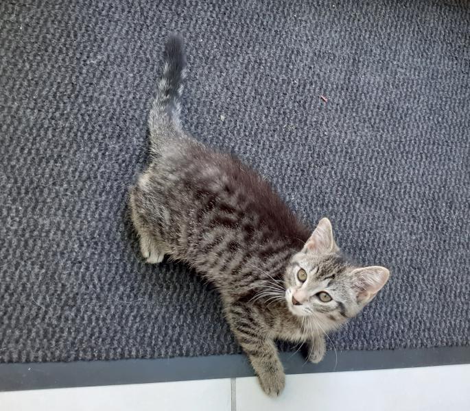 Taya est une chatonne bien dans ses pattounes. Très câline, vive, joueuse, elle s’entend avec les autres chats ainsi que les petits chiens.