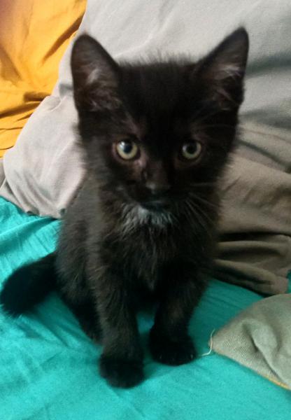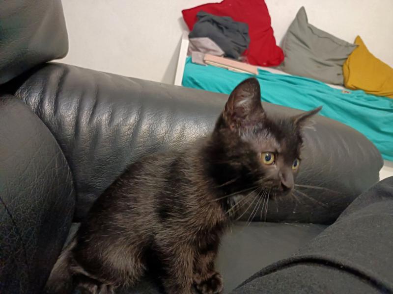Son histoire: Tichat a été trouvé seul sur un trottoir à peine âgé d’un mois et demi par un monsieur qui ne pouvait pas le garder car son chien voulait le « croquer ».