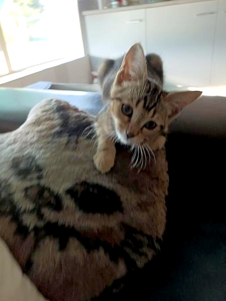 Pleine de vie et joueuse, elle adore par dessus tout les plumeaux en plumes d’oie fabriqués pas sa nounou Sylvie. Intrépide, elle n’a peur de rien, elle n’hésite pas à escalader les chaises pour pouvoir aller sur la table.