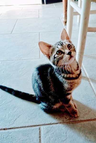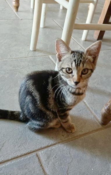 Son histoire: Thaïs, sa fratrie (Titine, Tikki, Tarzan) et leur maman ont été déposés chez l’un de nos vétérinaires partenaires.