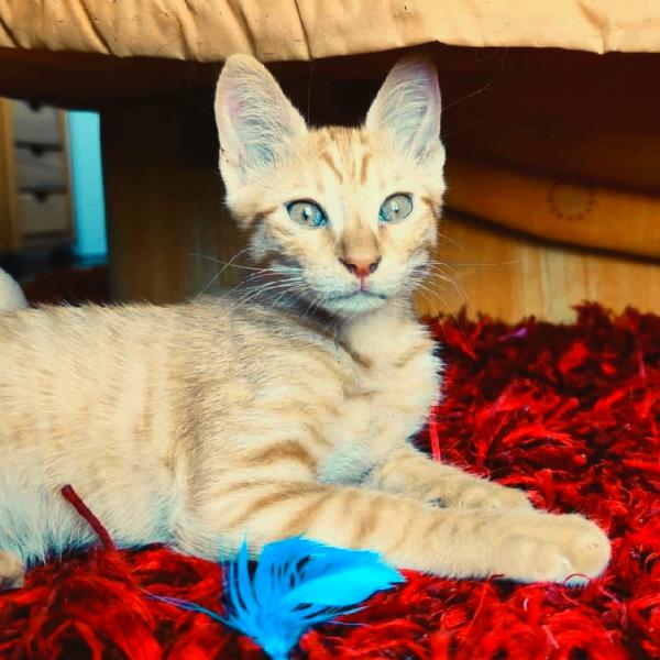 Énergique, gentil et affectueux, j’aime autant les câlins que les jeux. Un bisou sur le museau, un échange de regard prolongé, une caresse et hop, je mets mon puissant moteur à ronrons en route. J’essaie de miauler mais pour l’instant, je n’émets que des petits couinements attendrissants.