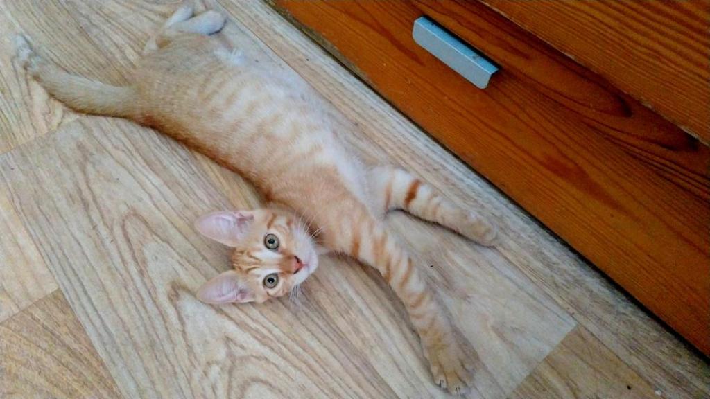 J’apprécie les câlins et je me blottis volontiers contre ma nourrice après de longues séances d’acrobaties. J’essaie de miauler mais pour l’instant, je n’émets que des petits couinements attendrissants.