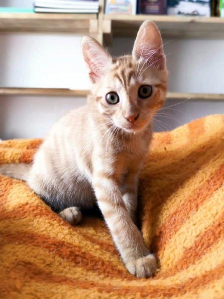 Je suis un chaton intrépide, espiègle et très sociable. Le jeu est ma grande passion et la curiosité une de mes nombreuses qualités. Gourmand, je ne refuse jamais une bonne gamelle.