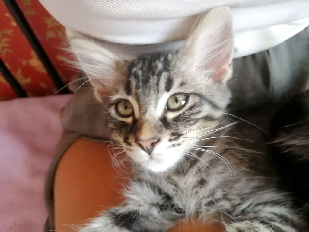 Tourniquet est un chaton extrêmement joueur, il joue avec tout et n’importe quoi, il joue même quand il est sur les genoux de sa nounou. Il joue avec tout ce qui bouge dont les mains, les doigts car c’est très amusant pour lui. Sa famille d’accueil pense qu’il aura besoin d’un copain chat ou chien joueur comme lui pour s’épanouir.
