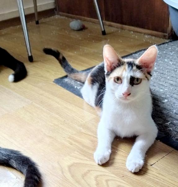 Son histoire: Tressie et ses soeurs (Tinnie et Tweet) sont nées d’une chatte errante que nourrissait une dame dans son jardin. Rozanna, la maman a depuis été stérilisée et a pu élever ses petites en toute sécurité.