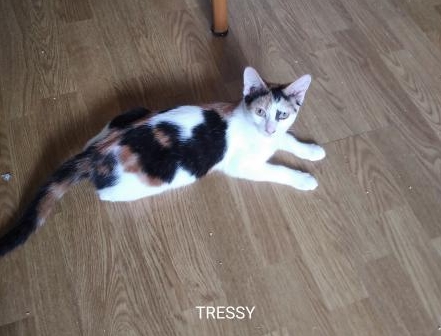 Tressie est une chatonne de caractère comme souvent les tricolores. Elle adore les caresses et en réclame dès que l’on passe près d’elle. Cependant elle n’aime pas être portée.