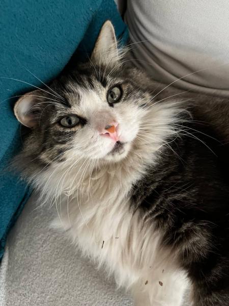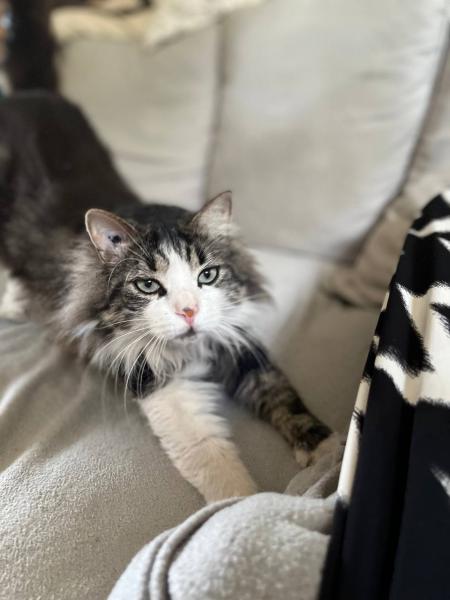 Mimi est un chat pataud avec ses cinq kilos et ses poils mis-longs tout doux. Son regard attendrissant fait fondre sa famille d’accueil.