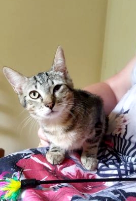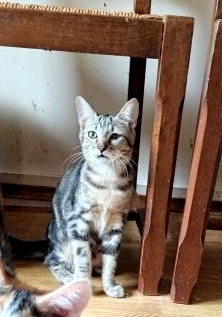 Son histoire: Tweet et ses soeurs (Tressie et Tippie) sont nées d’une chatte errante que nourrissait une dame dans son jardin. Rozanna, la maman a depuis été stérilisée et a pu élever ses petites en toute sécurité.