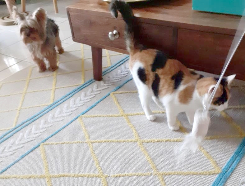 Sister aime la compagnie des autres chats avec qui elle adore jouer.