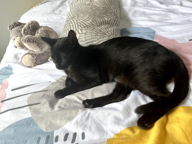 Son histoire: Xena a été trouvée abandonnée enfermée dans un carton sur une zone industrielle avec sa portée et une compagne d’infortune elle aussi avec ses petits. La petite troupe (dont huit chatons) a été sauvée grâce à une personne qui travaillait sur ce site et a entendu des miaulements venant du carton. Elle les a tous ramenés chez elle avant de nous demander de l’aider à leur trouver de gentilles familles.