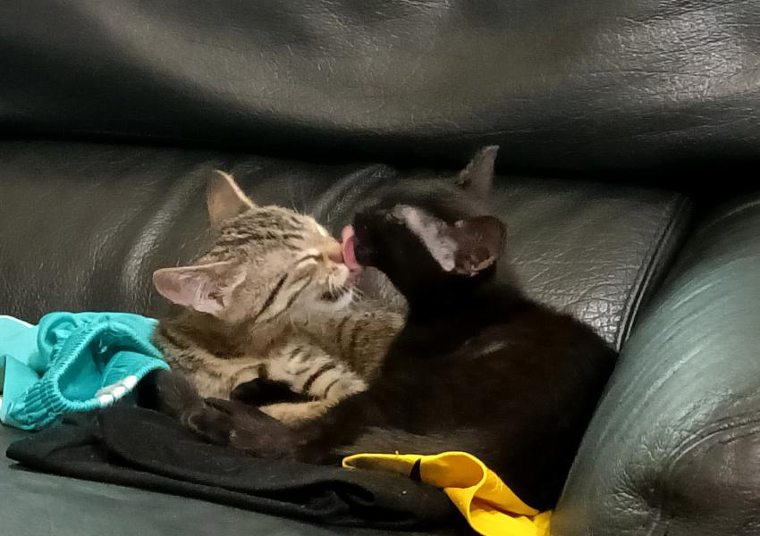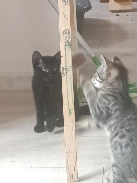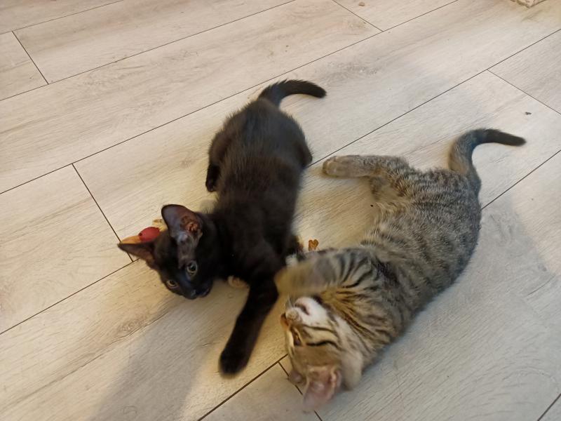 Leur histoire: Ténébra, Tigron et leurs frère et soeur ont été trouvés sur le lieu de travail d’une personne qui les a mis à l’abri avant de nous les confier.