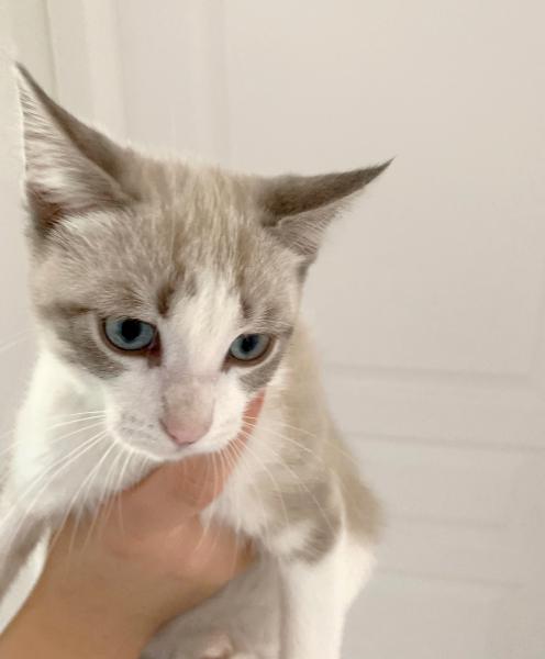 Taïga est une petite chatonne sociable qui adore jouer que ce soit avec ses jouets ou avec les chiens et chiots présents dans sa famille d’accueil.