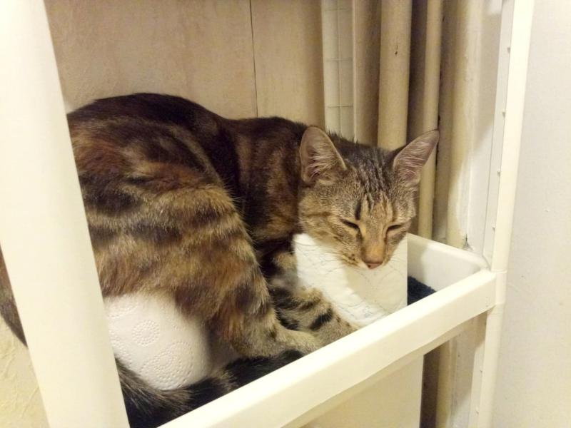 Son histoire: Soké nous a été signalée par une dame qui la nourrissait depuis un mois dans un parking sous-terrain où nous sommes allées la trapper. Malgré les publications pour retrouver sa famille elle n’a jamais été réclamée.