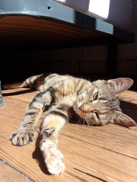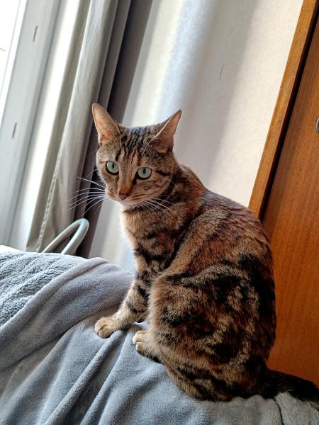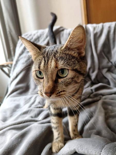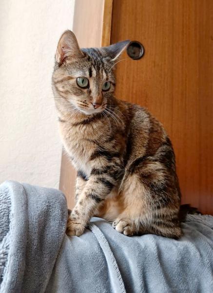 Bavarde, elle répond quand on l’appelle et on peut même parfois avoir des discussions avec elle. Elle est encore un peu peureuse en cas de mouvements ou gestes brusques, mais la plupart du temps elle cherche des câlins.