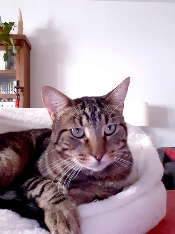 Ce pot de colle d’une extrême gentillesse vous suivra partout une fois la timidité des premiers jours passée. Il s’invitera volontiers sur vos genoux pour faire des câlins.