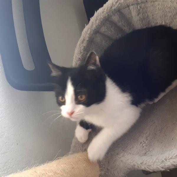 Théodore est un chaton bien dans ses patounes qui n’a peur de rien et est très curieux. C’est une véritable machine à ronron qui privilégie les parties de jeu aux câlins pour le moment.