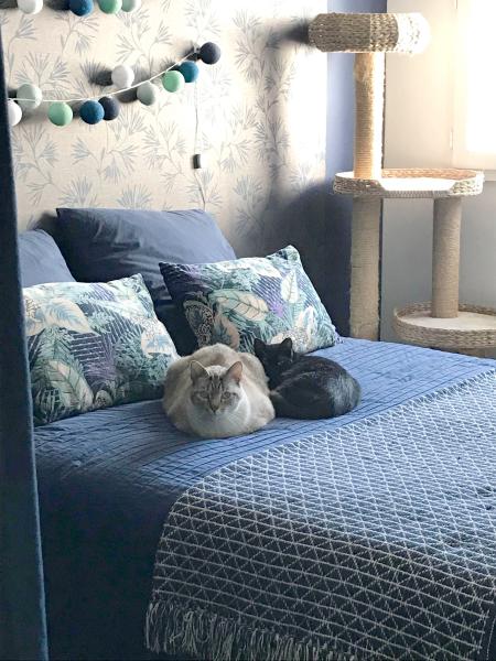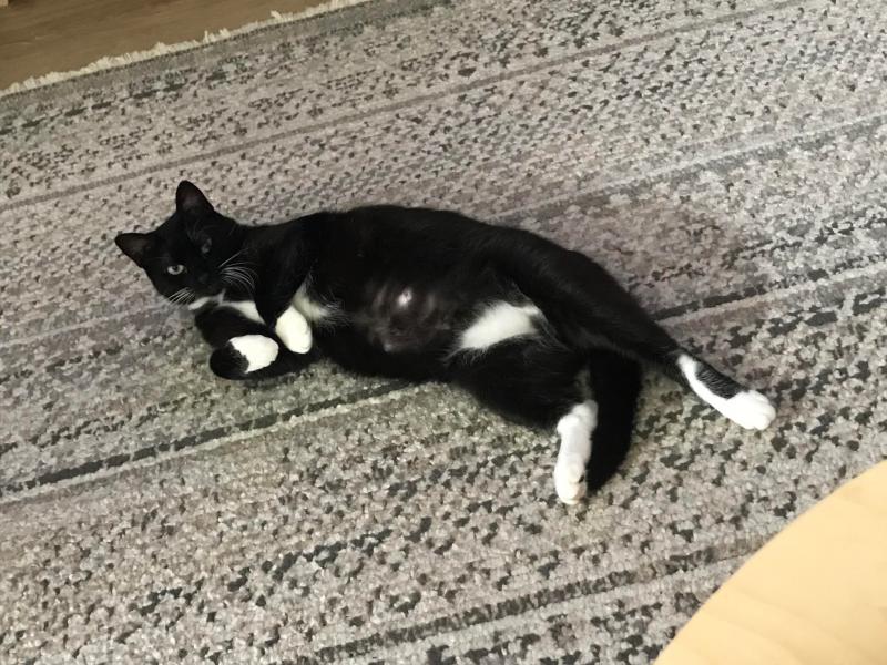 De mes sept premiers mois de vie passés dehors je garde une grande méfiance envers l’humain. Je m’aventure à me frotter aux jambes lorsque c’est l’heure de manger, parfois même je dors en bout de lit ou sur mon plaid posé sur la table de nuit. Cependant, quand ma nounou s’approche trop, je m’éloigne. Je préfère quand c’est moi qui initie le contact. Comme elle me parle souvent, je me suis habituée à sa présence. J’ai besoin de calme et d’une famille patiente qui saura me laisser évoluer à mon rythme.