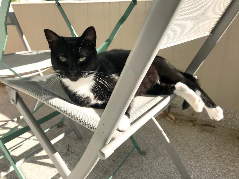 Je m’appelle Sépia, je suis de petit gabarit et j’arbore une sublime robe noire et de beaux yeux verts et d’élégantes chaussettes blanches qui me donnent belle allure.