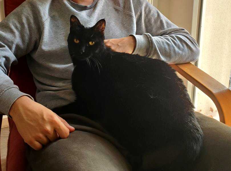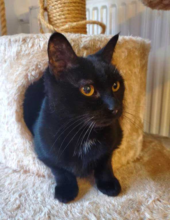 Josette est une minette adorable, douce et très câline avec les humains. Elle adore se blottir contre quelqu’un, ou dormir au chaud près d’un radiateur ou dans un petit espace (caisse de transport, trou d’un arbre à chat…). La nuit, elle n’hésitera pas à venir dormir au plus près de vous et vous faire des câlins de l’espace 🙂 Son beau regard orange, son petit bidou bien rond et sa queue courte la rendent craquante à souhait.