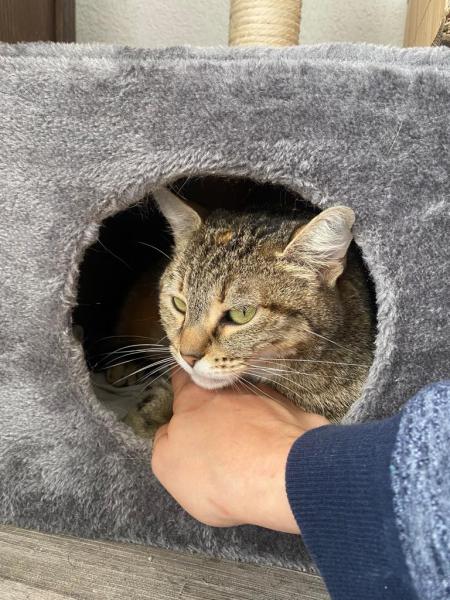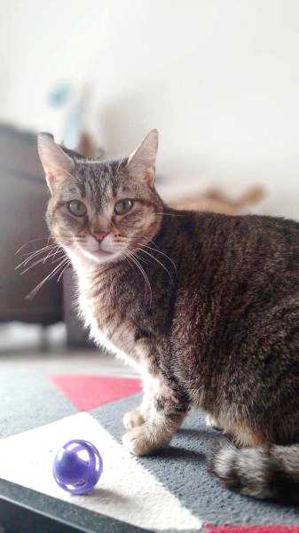 Elle adore son arbre à chat pour y faire de belles siestes et pour observer l’extérieur qu’elle aimerait découvrir. Cependant sa peur l’en empêche pour le moment. Elle préfère rester dans son environnement rassurant. Elle aime jouer avec ses balles et mange de tout avec une préférence pour le poisson.