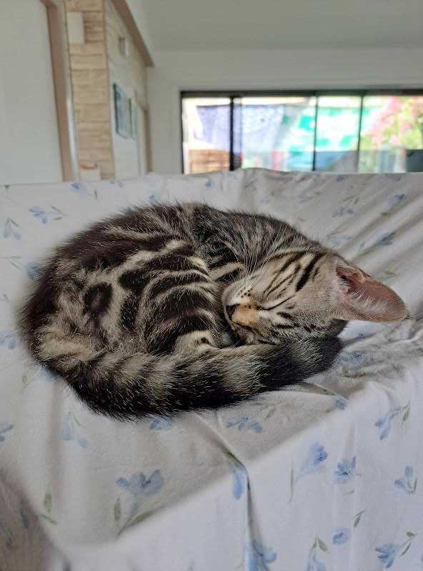 Elle aime les câlins mais ne reste jamais longtemps car elle préfère retourner jouer avec ses frères et soeur (Ugo, Utakata et Univers). Comme eux, elle est gourmande et ne rate jamais l’heure de la pâtée.