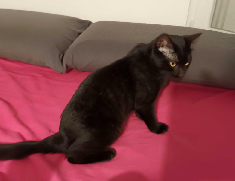 Tac s’entend avec ses congénères. Elle ne connait pas les chiens. Elle est propre.
