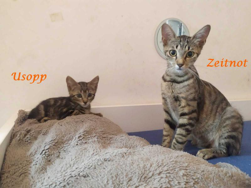 Zeitnot est identifiée, stérilisée, testée fiv/felv négatif, primo-vaccinée et déparasitée. Usopp est identifiée, primo-vaccinée typhus/coryza et déparasitée.
