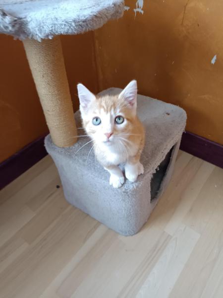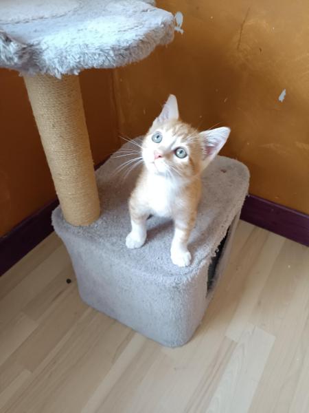 Ulk est un chaton sociable qui ronronne dès qu’il voit sa nounou rentrer. Il la suit partout pour avoir des câlins et se laisse porter volontiers.