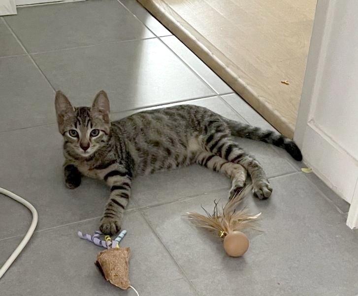 Upi est un chaton très joueur qui aime les câlins, mais sa priorité reste de jouer avec tout et n’importe quoi (stylo, feuille, Playmobil, Lego…). Il adore les jouets avec des clochettes. Quand il joue il peut lui arriver de mordiller et de mettre les griffes mais sans méchanceté.