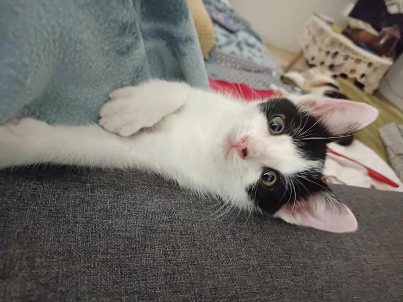 Ugor est un adorable chaton bien dans ses patounes et très proche de l’humain. Il adore les câlins et sait venir les chercher ou s’allonger sur sa nounou pour en avoir. Même la vétérinaire a eu droit à ses câlins. Il aime jouer avec n’importe quoi. Il ronronne d’un rien et se laisse porter sans rechigner.
