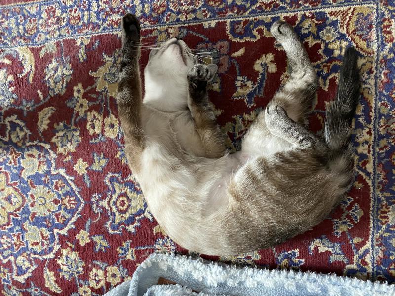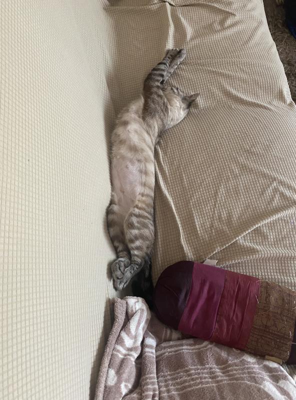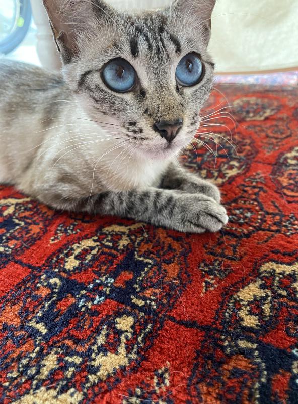 Elle se sent très vite chez elle, se laisse dorloter et prendre dans les bras, recherche beaucoup la compagnie des humains de jour comme de nuit.