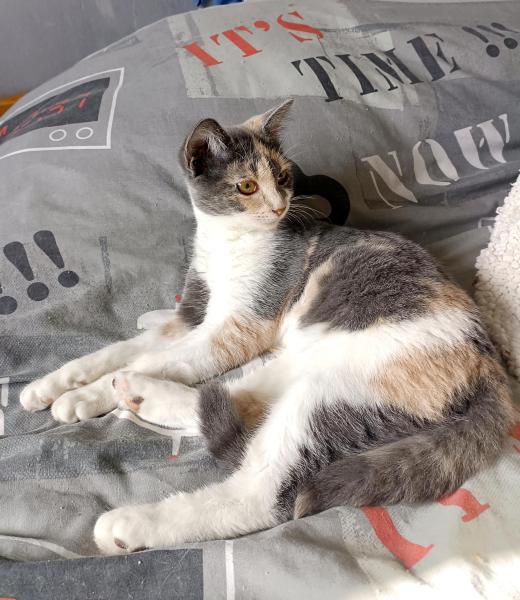 Son histoire: Ursula et sa fratrie sont nées d’une maman sauvage désormais stérilisée et laissée aux bons soins de son nourrisseur.