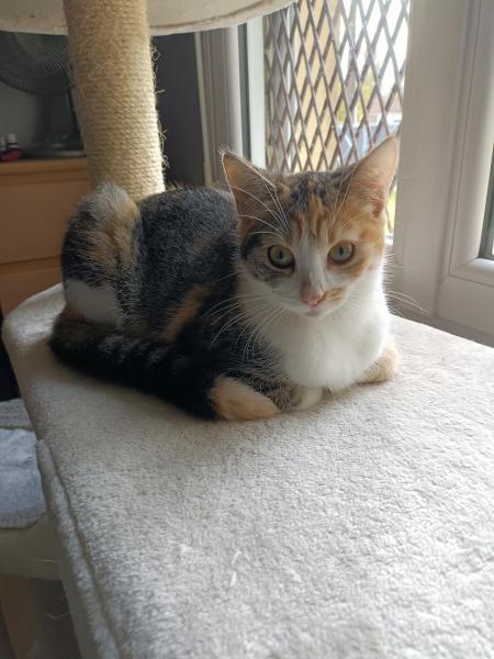 Comme tous les chatons elle aime courir et jouer surtout avec le plumeau mais a aussi des temps calmes.