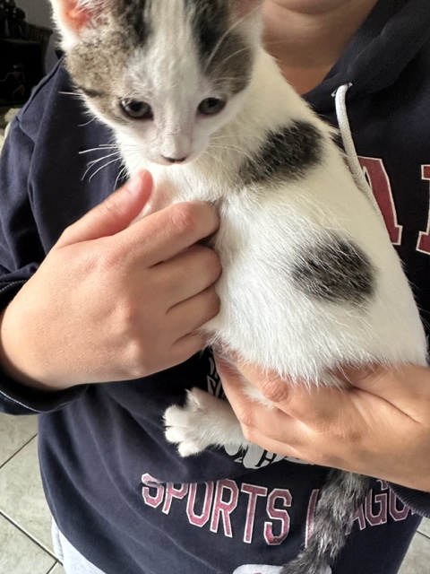 Son histoire: Urkia et sa fratrie ont été trouvées dans une résidence à peine âgées de quelques jours. Grâce aux bons soins de leur nounou Emmanuelle a biberonné et entouré d’amour ces quatre chatons, ils ont pu survivre et grandir en bonne santé.