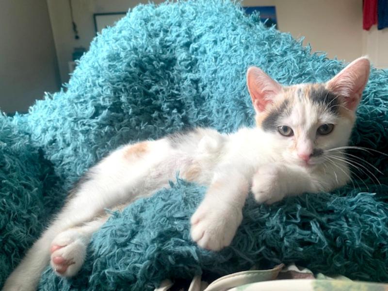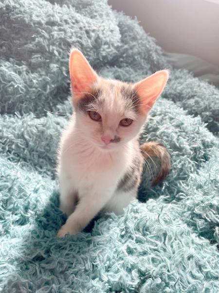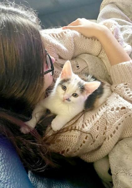 Ursie est une petite chatonne affectueuse, fusionnelle avec les humains, très sociable même avec les personnes qu’elle ne connaît pas.