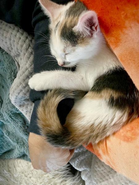 Elle aime s’endormir sur son humain et n’est pas avare de ronrons, petits coups de tête affectueux et câlins. Pot de colle, elle vous suivra partout et vous fera de longues conversations!