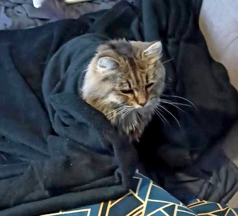je m’appelle Grumpy et malgré mon regard de grincheuse je suis une vraie boule de tendresse. J’adore me faire câliner et caresser blottie contre les genoux de mon humain que j’aime aussi suivre comme le vrai pot de colle que je suis.
