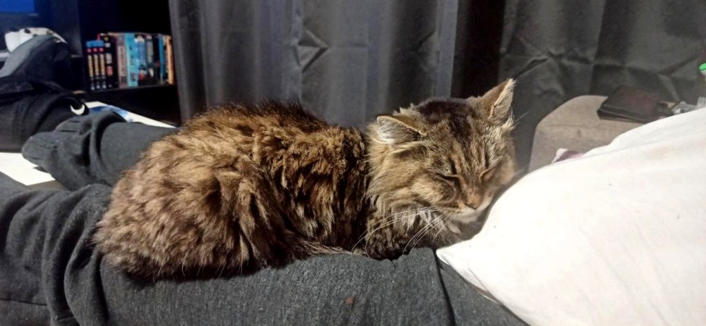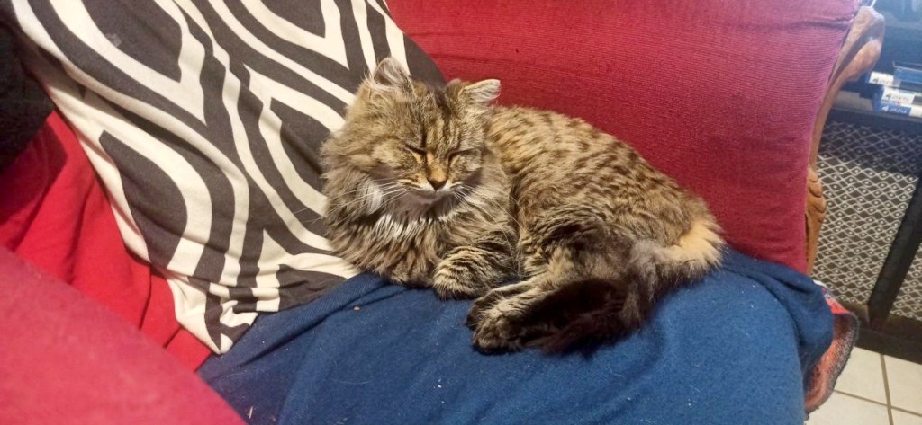 Son histoire: Grumpy est arrivée dans le jardin d’une dame qui n’a pas pu la garder car sa chatte ne l’acceptait pas.