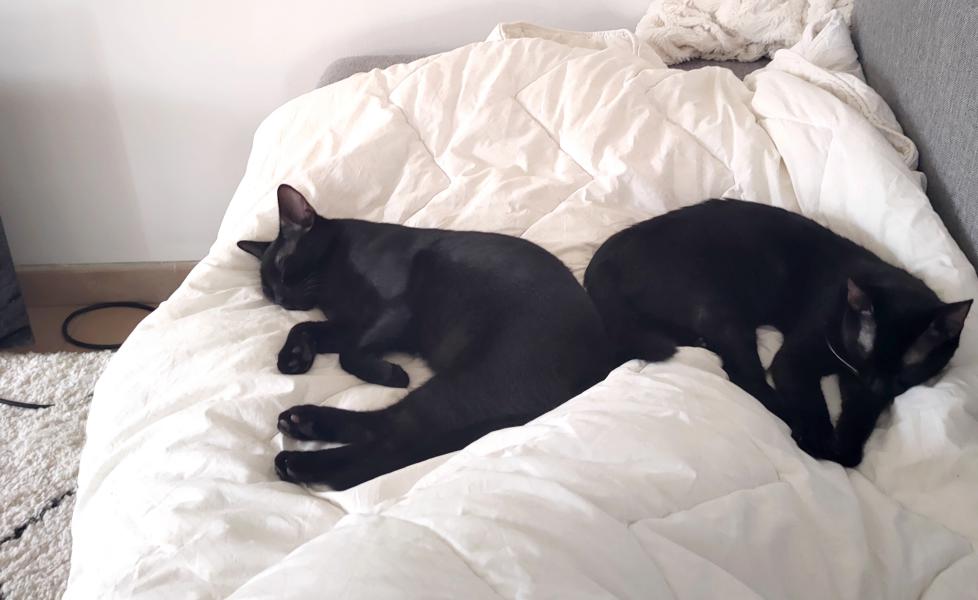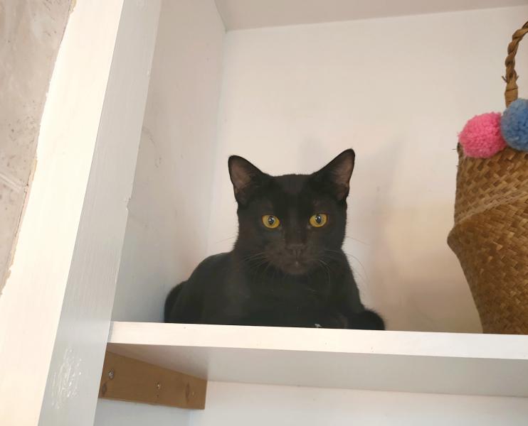 Pour l’instant, Uno ne se laisse caresser que le haut de la tête et quand il est en haut de son arbre a chat ou calé dans un placard douillet.